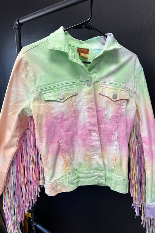 Oringal price $120 - Fringe Tie Dye Jean Jacket - Size Small