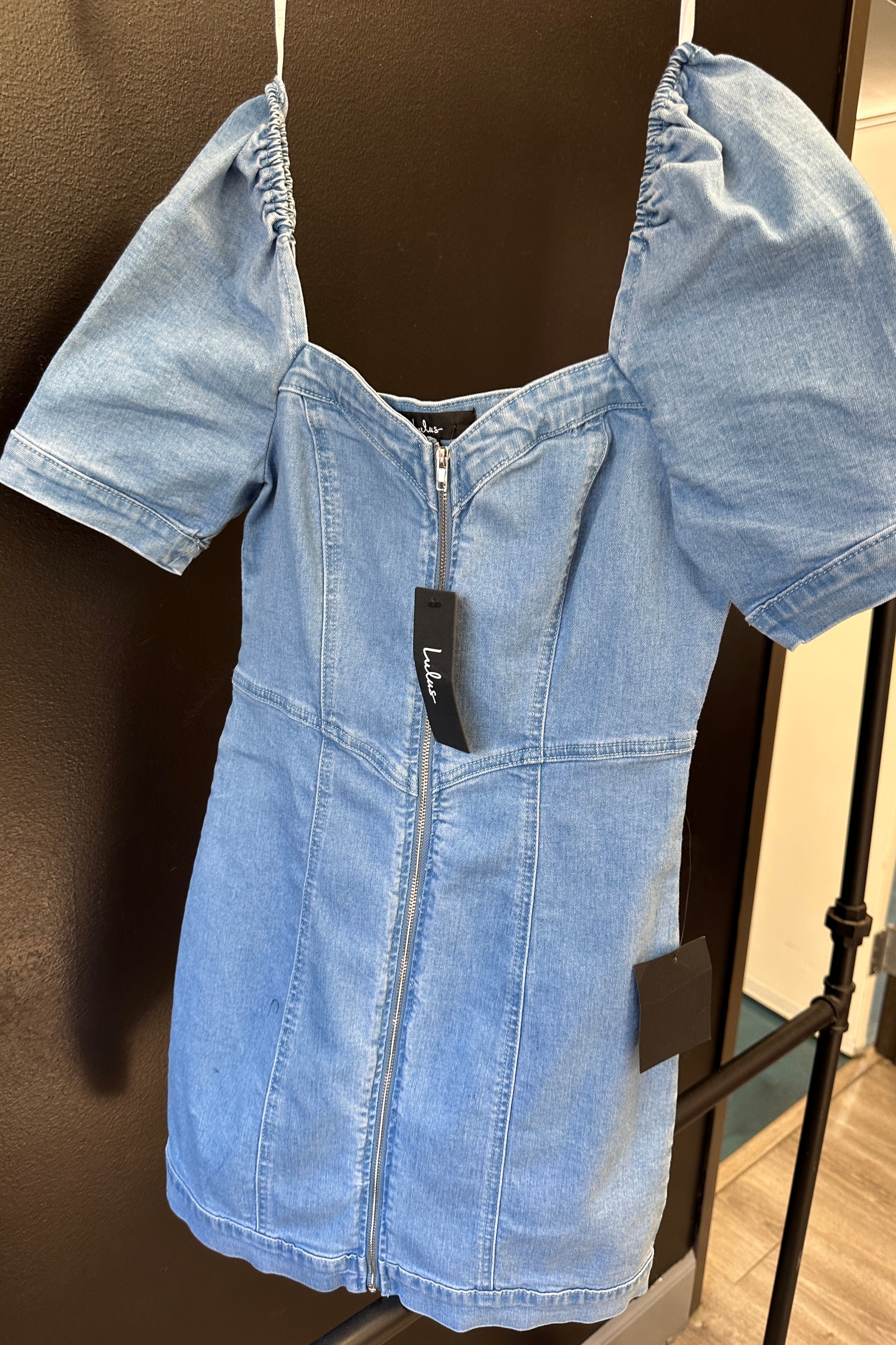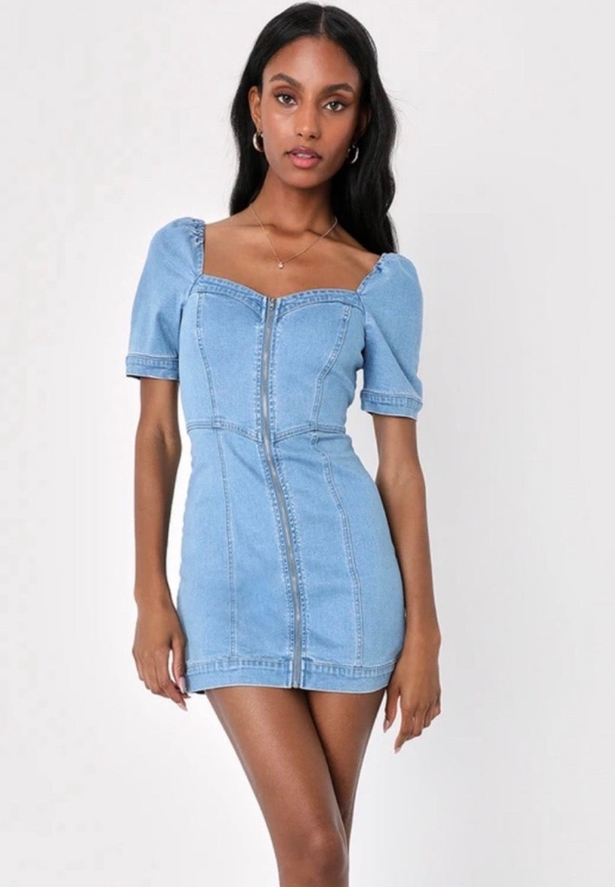 Lulu's Zip-Front Denim Dress - Size Small (NWT)