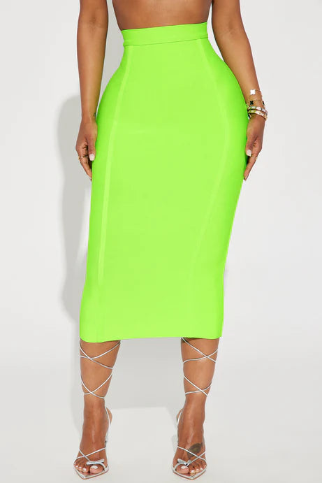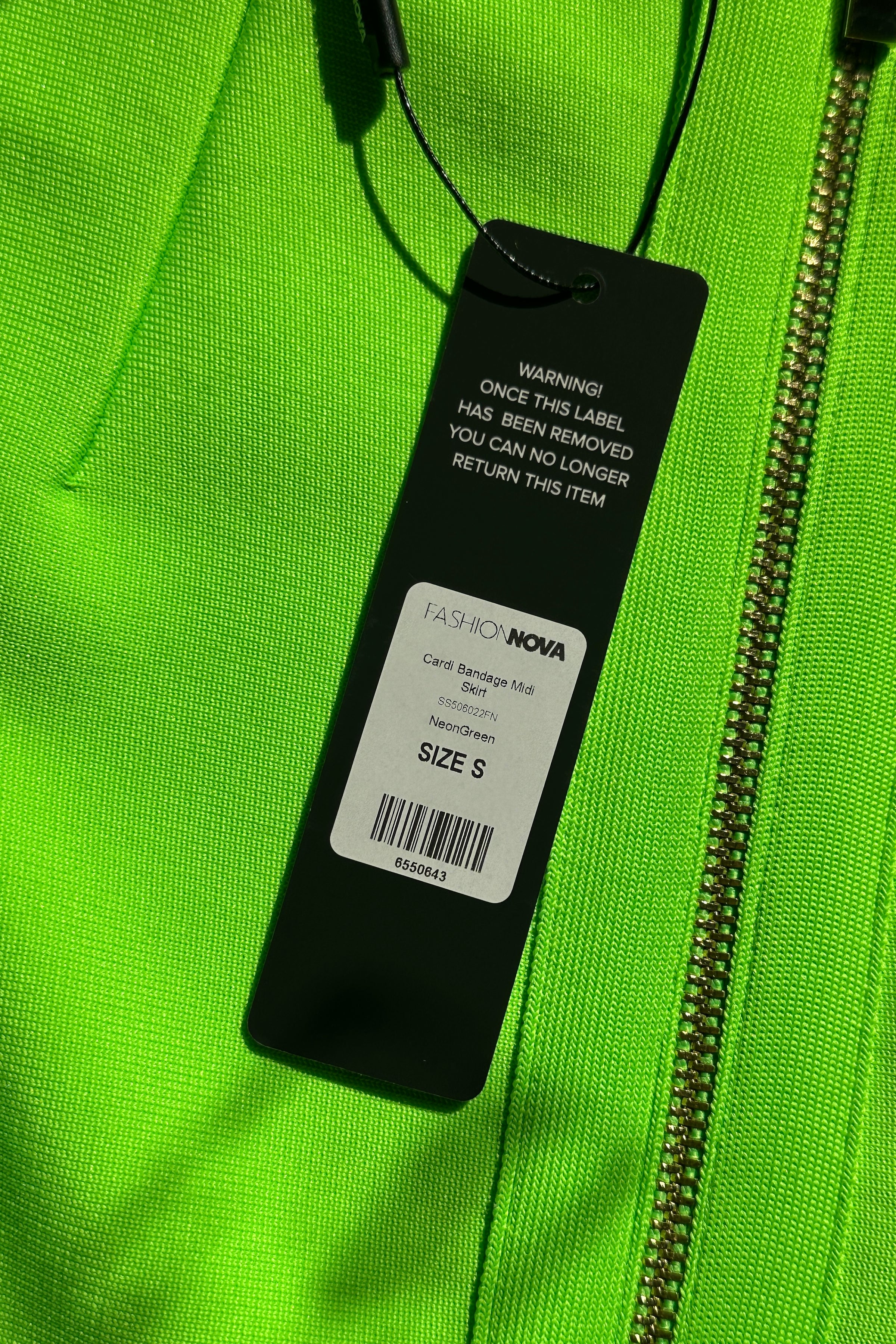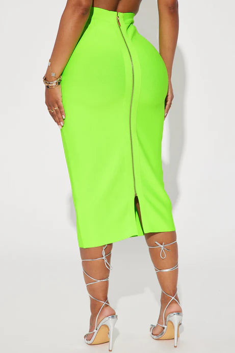 Neon Green Zipper Midi Skirt - Size Small (NWT)
