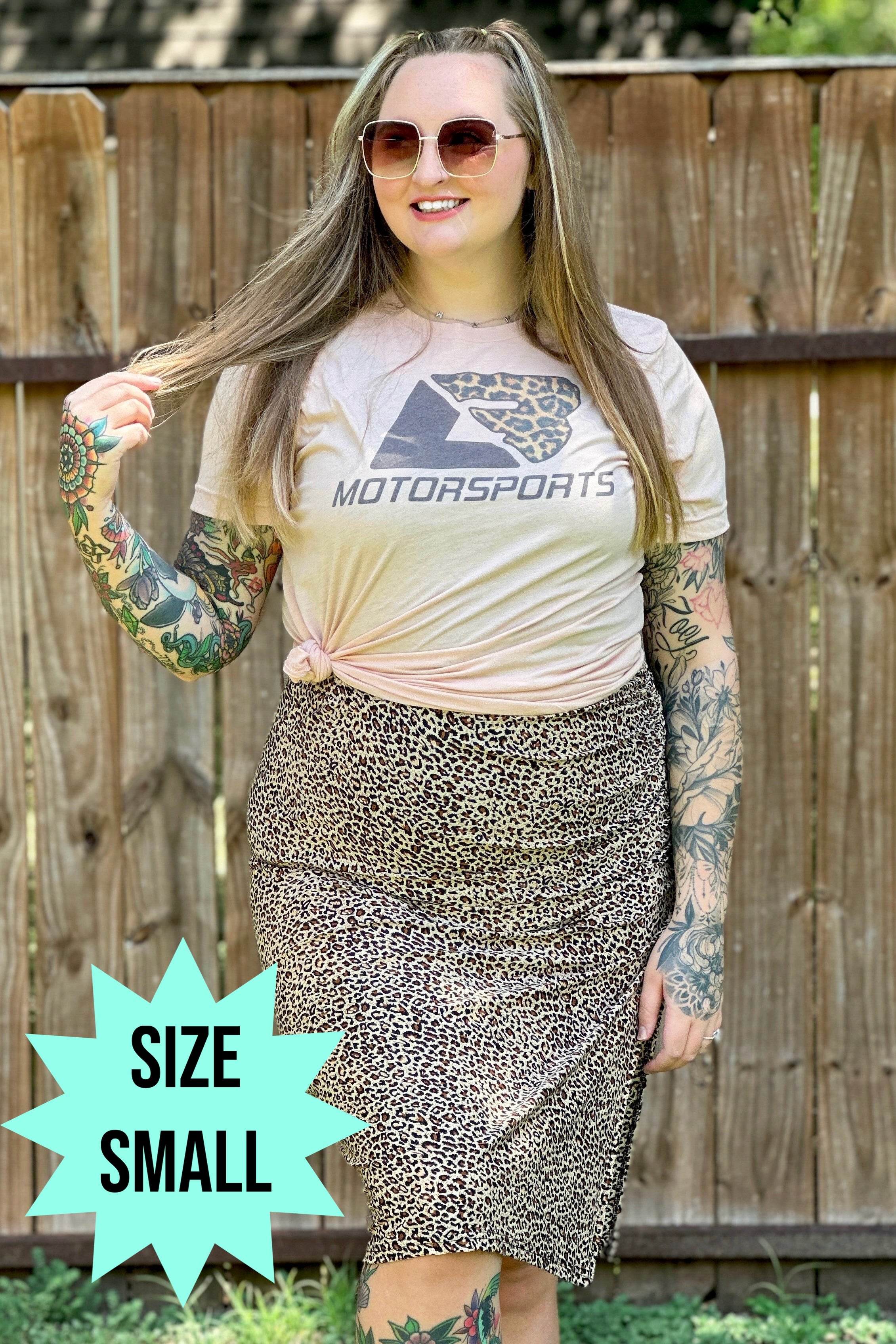 Peach Leopard Logo Tee (Size Small)